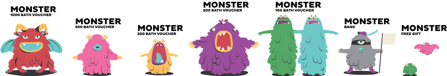 พร้อมรับของรางวัลเป็น Gift Voucher ตามมูลค่าของ Lucky Monsta แต่ละตัวที่แตกต่างกันไป เพื่อนำไปช้อปปิ้งได้ต่อนั่นเอง