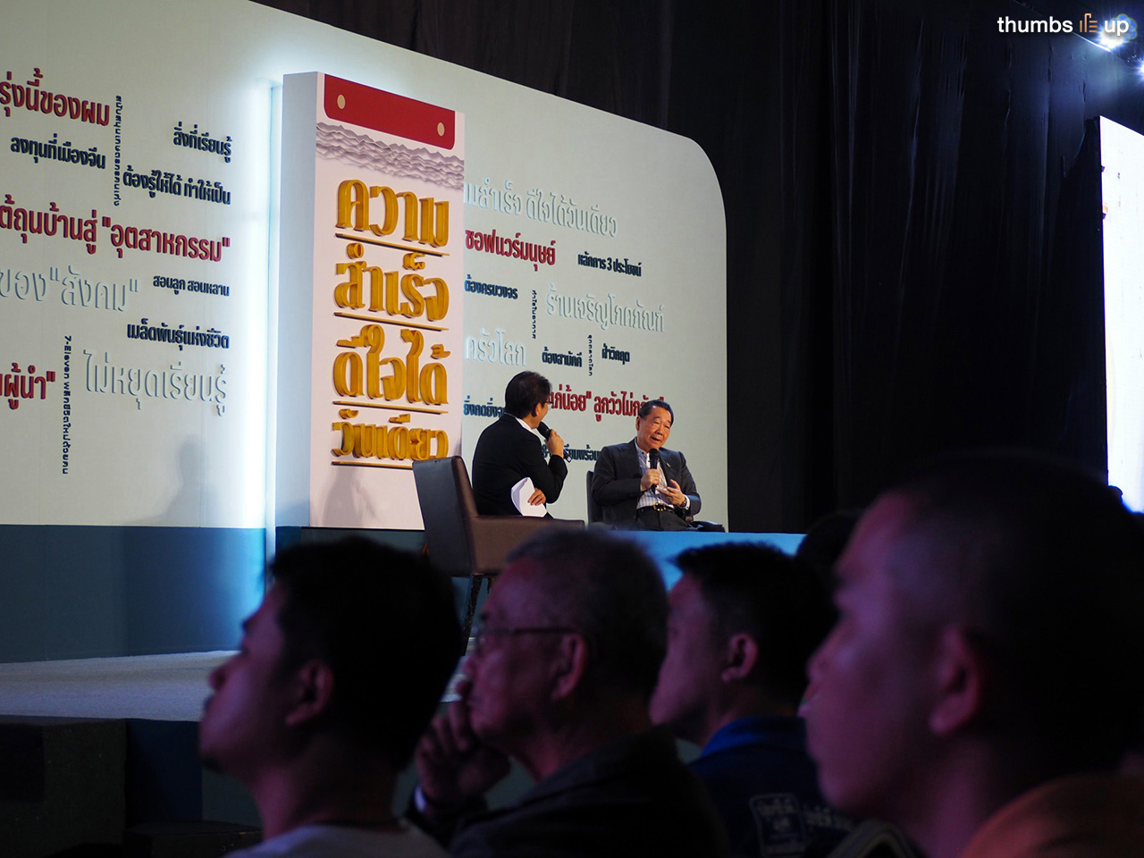 หลังจากนั้น สรกลก็เชิญ ‘สิทธิชัย หยุ่น’ ผู้สัมภาษณ์ธนินท์เป็นคนแรกๆ ในไทย ขึ้นมาเล่าถึงตัวตนที่ได้พบจากการสัมภาษณ์-พูดคุยในหลายๆ ครั้ง จากนั้นสุทธิชัยถามทิ้งท้ายว่า “ความสำเร็จดีใจได้วันเดียว ล้มเหลวเสียใจได้กี่วันครับ?”