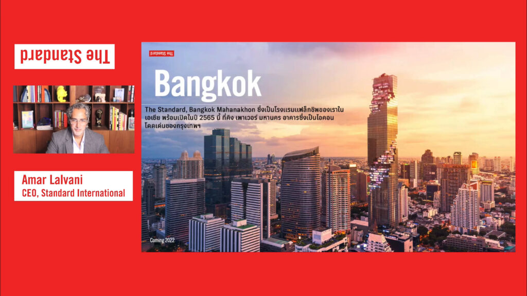 “ในนามของ The Standard ผมมีความภาคภูมิใจอย่างยิ่งที่จะแนะนำโรงแรมสมาชิกใหม่ของเราอย่างThe Standard, Hua Hin ที่มีกำหนดเปิดบริการในเดือนธันวาคมของปีนี้ รวมถึง The Standard, Bangkok Mahanakhon โครงการแฟล็กชิพของเราในเอเชีย ที่จะเปิดตัวปี2565 และ The Standard, Ibiza โรงแรมแห่งที่สองของเราในยุโรป” มร. อมาร์ ลัลวานี่ ซีอีโอ Standard International เผย