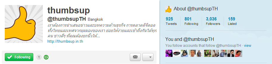 วันนี้ทีมงานอยากจะถือโอกาสขอขอบคุณแฟนๆ ผู้อ่าน thumbsup ทุกท่านในโอกาสที่มีคนติดตามทั้งทาง Facebook และ Twitter เกิน 3,000 คนแล้ว ซึ่งหลังจากที่เราได้เริ่มเปิดตัวและนำเสนอข่าวมาอย่างต่อเนื่องเป็นเวลา 4 เดือนครึ่ง ทีมงานได้รับการตอบรับ คำแนะนำ และคำติชมที่มีค่ามาอย่างต่อเนื่อง และเรากล้าพูดได้อย่างเต็มปากว่าเราเป็นเว็บที่เติบโตได้เพราะเรามีผู้อ่านที่เดินมากับเรานั่นเอง เราได้นำหลายๆ คำแนะนำมาปรับปรุงทั้งวิธีการนำเสนอ รูปแบบข่าว หรือแม้แต่การเข้ามาแลกเปลี่ยนความคิดเห็นซึ่งนั่นทำให้เราเข้าใจความต้องการของทุกท่านได้ชัดเจนขึ้นเรื่อยๆ