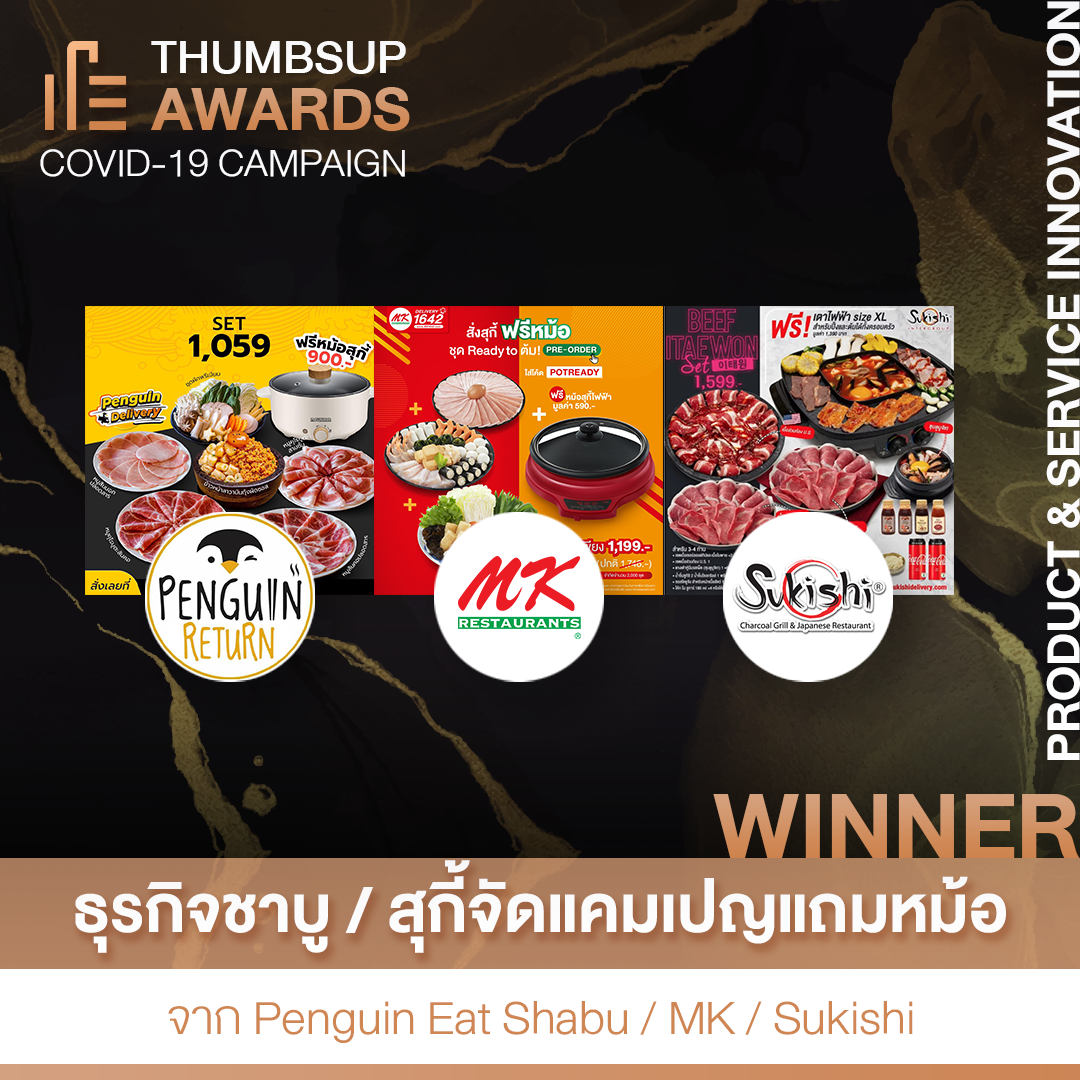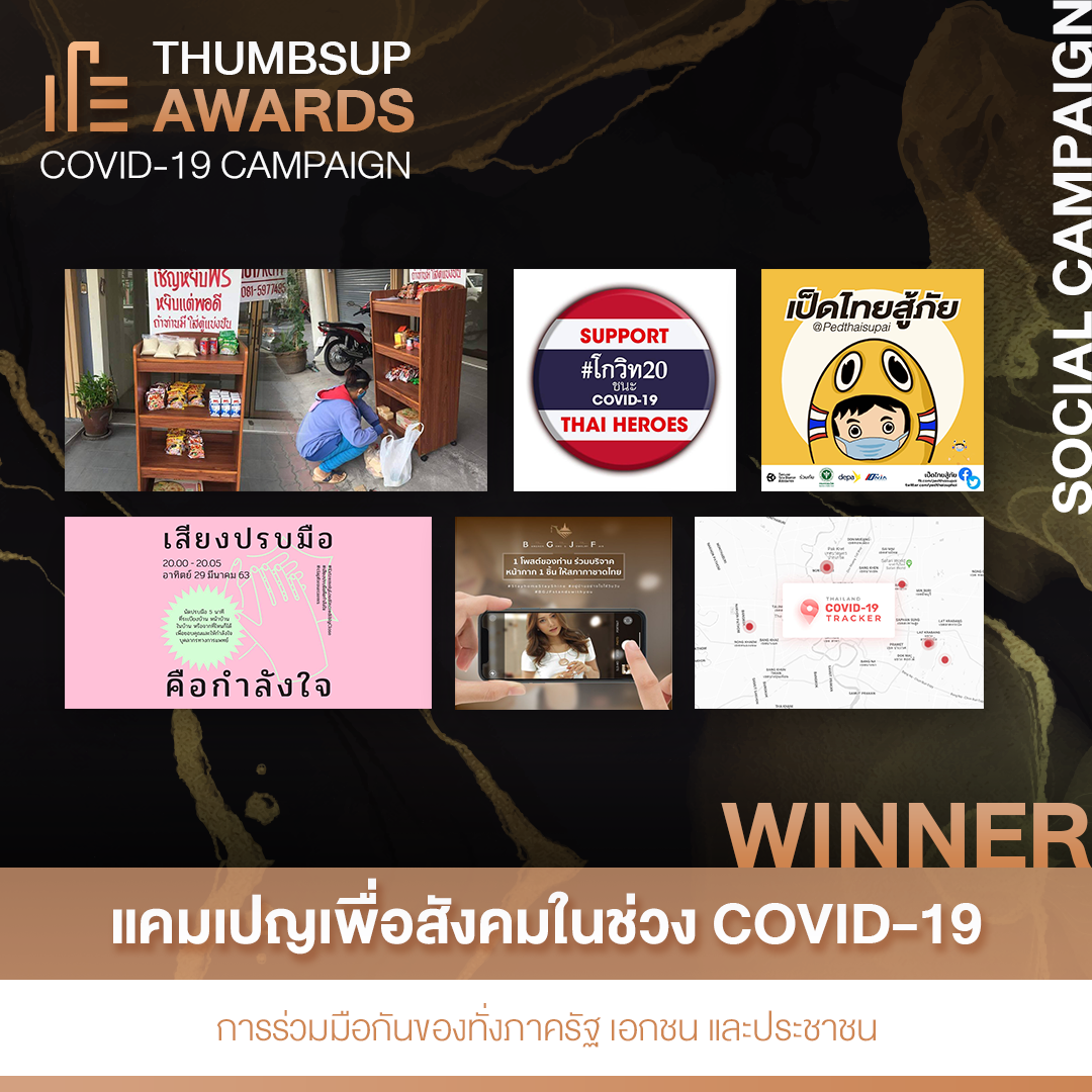 ประกาศผลกันไปเป็นที่เรียบร้อยเล้วนะครับกับรางวัล Thumbsup Awards : COVID-19 Campaign กับผู้ชนะและผู้เข้าชิงสาขาต่างๆ ทั้งแบรนด์ ธุรกิจ องค์กรและแคมเปญต่างๆ ที่ได้ใช้วิกฤตนี้ในการปรับตัวทั้งในแง่ของการสื่อสาร การเรียนรู้ กิจกรรมเพื่อสังคม และแคมเปญการตลาดได้อย่างสร้างสรรค์ ในช่วงวิกฤติโควิด-19 นี้