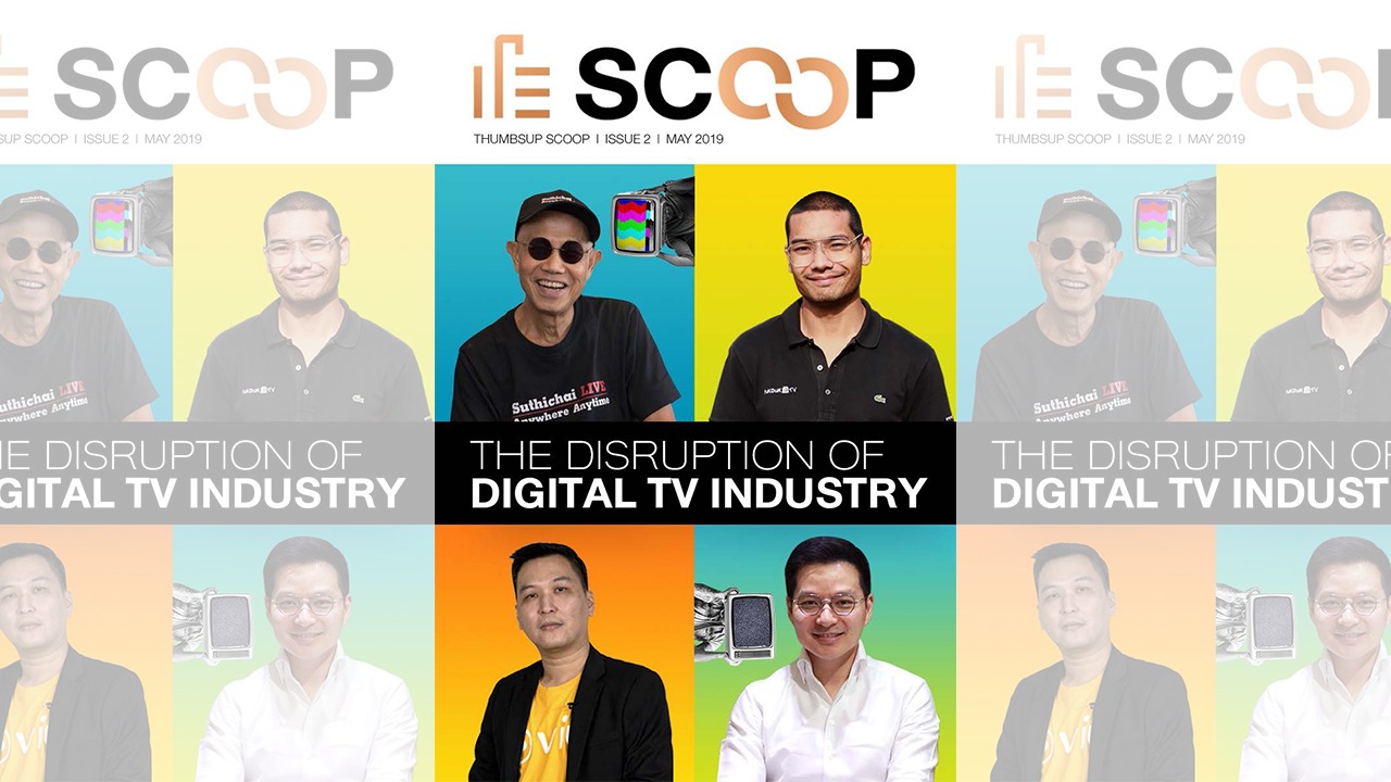 ติดตามอ่านนิตยสาร THUMBSUP SCOOP ในประเด็นเกี่ยวกับการเผชิญกับการเปลี่ยนแปลงแบบฉับพลัน (Disruption) ของอุตสาหกรรมทีวีดิจิทัล เราได้รับโอกาสเข้าสัมภาษณ์บุคคลที่เคยผลิตสื่อเดิมและผันตัวมาเป็นผู้ผลิตสื่อใหม่ เราคุยกับพวกเขาเพื่อหาคำตอบว่าทีวีดิจิทัลหลังยุค 7 ช่องขอคืนใบอนุญาตกับ กสทช. จะเป็นอย่างไร