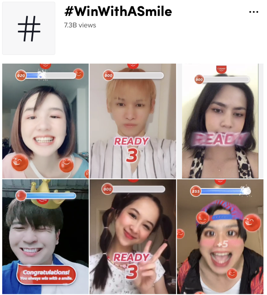 ซึ่ง TikTok For Business เปิดโอกาสให้แบรนด์สามารถสร้าง Branded Effect ที่นอกจากจะช่วยกระตุ้นให้เกิดการมีส่วนร่วมกับแบรนด์แล้ว ยังสามารถสื่อสารภาพลักษณ์และสิ่งที่แบรนด์ต้องการจะบอกผ่าน Branded Effect ได้ ซึ่งถือเป็นหนึ่งในนวัตกรรมการตลาดดิจิทัลบน TikTok อาทิ แบรนด์คอลเกต ที่ได้สร้างสรรค์แคมเปญ #WinWithASmile เพื่อเชิญชวนกลุ่มเป้าหมายมาร่วมสนุกกับเกมเก็บรอยยิ้มพร้อมลุ้นรับของรางวัลในวัน World Smile Day ที่สามารถสร้างยอดวิวรวมกว่า 7.3 พันล้าน
