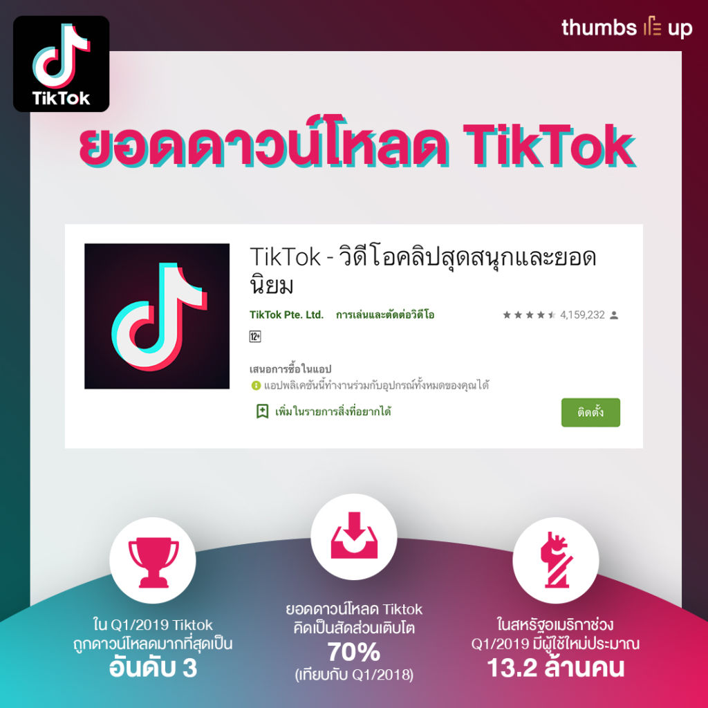 – ยอดดาวน์โหลด TikTok คิดเป็นสัดส่วนเติบโต 70% เทียบกับไตรมาสที่ 1 ปี 2018