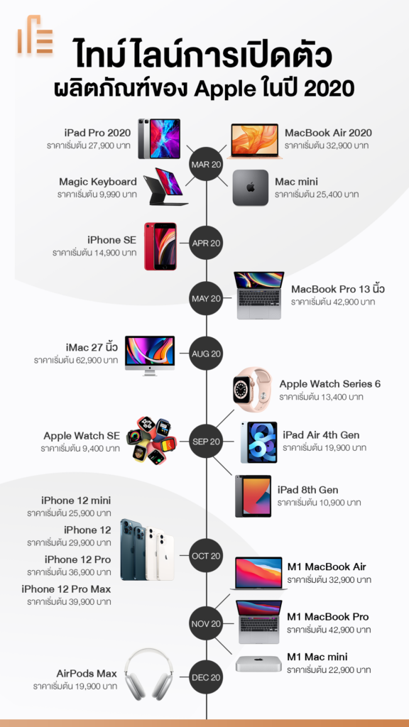 Thumbsup จึงขอพาทบทวนไทม์ไลน์การเปิดตัวผลิตภัณฑ์ของ Apple ในปี 2020 กันครับ