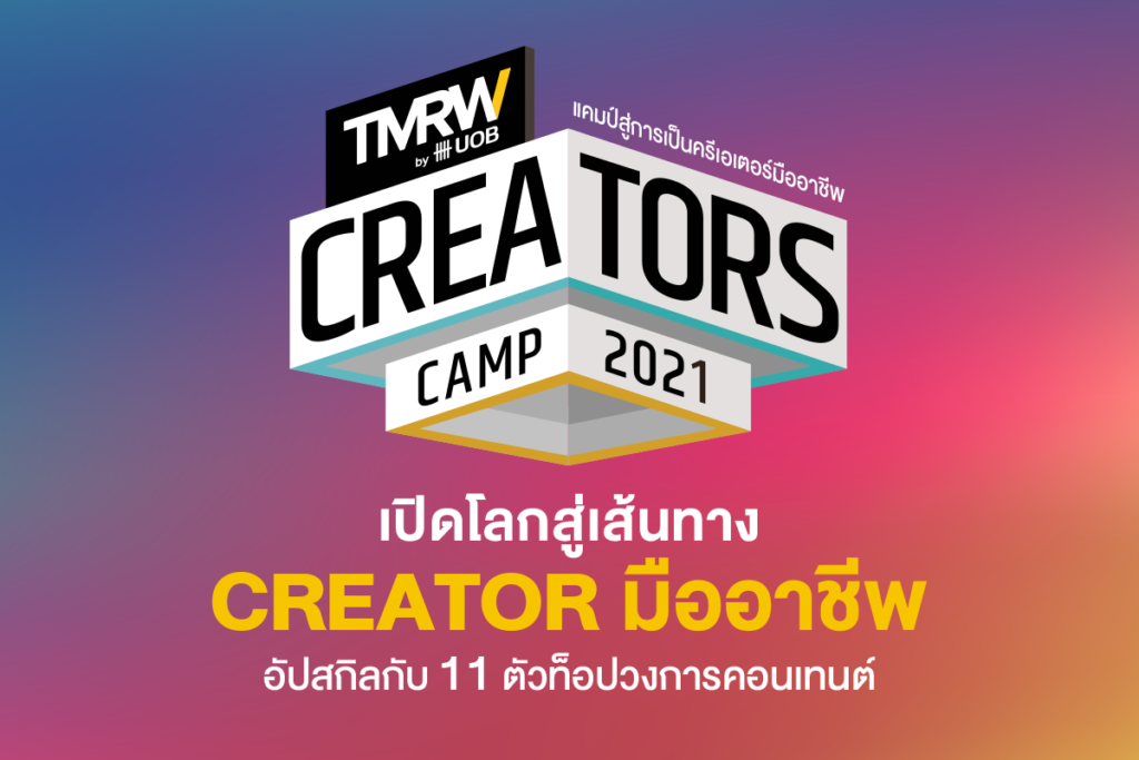 และล่าสุด TMRW ประกาศจัดกิจกรรม TMRW Creators Camp 2021 เพื่ออัปสกิลและต่อยอดความฝันของเหล่าครีเอเตอร์รุ่นใหม่ ที่รักในการสร้างสรรค์คอนเทนต์รูปแบบต่างๆ สู่เส้นทางครีเอเตอร์มืออาชีพ มีไฮไลต์อะไรบ้างไปดูกัน