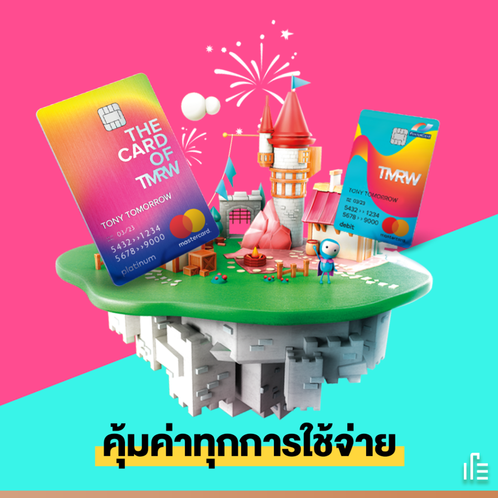 - ตั้งแต่ 1 พ.ค.62 – 30 มิ.ย. 63 ท่านจะได้รับ Cashback สูงสุดหมวดละ 300 บาท/เดือน เมื่อใช้จ่ายผ่านบัตรเครดิต TMRW ในหมวดร้านอาหาร ห้างสรรพสินค้า และท่องเที่ยว หรือ 3 หมวดที่คุณเลือกได้เอง เมื่อทำรายการผ่านบัญชี TMRW Everyday ตามที่ธนาคารกำหนดสำเร็จ (ปกติหมวดละ 100 บาท/เดือน)