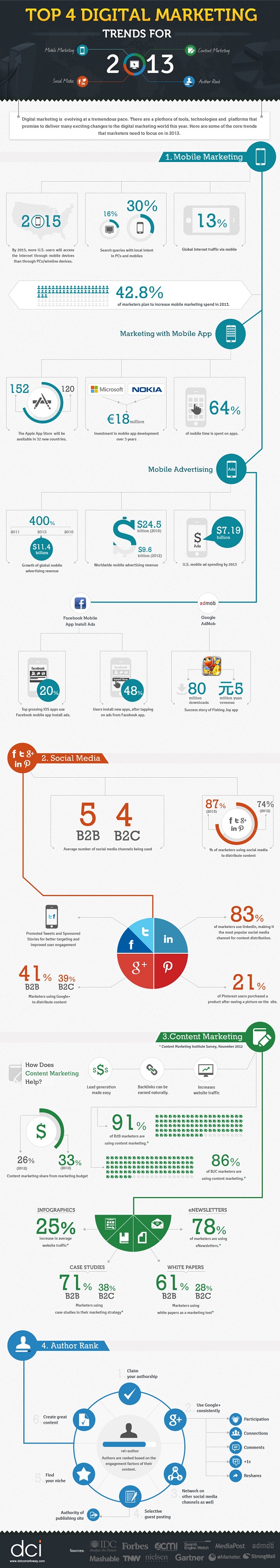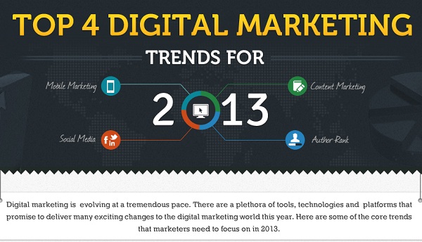 ไหนจะ mobile marketing ยังมี social media รวมถึง content marketing และ author rank ทั้งหมดนี้คือ 4 เทรนด์ที่ร้อนของจักรวาลดิจิตอลมาร์เก็ตติงแห่งปี 2013 ซึ่งทุกคนควรจับตาและเรียนรู้ให้ลึกซึ้ง