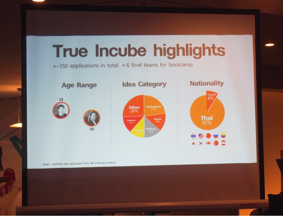 True Incube ยังได้ถือโอกาสนี้เล่าสถิติต่าง ๆ ที่น่าสนใจของโครงการ ดังต่อไปนี้