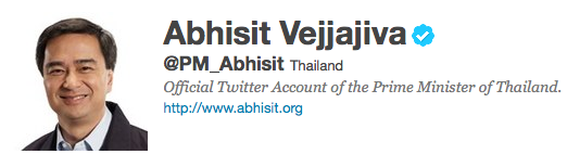 ตัวอย่าง Twitter Profile ที่มีป้าย “Verified Account” ของนายกฯ อภิสิทธิ์ที่ไม่ใช่ทุกคนจะได้มาง่ายๆ
