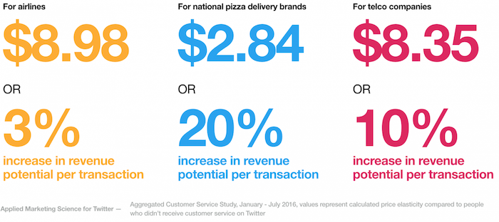 เป็นผลสำรวจที่น่าทึ่งไม่น้อยสำหรับ Twitter ที่พบว่า แบรนด์ผู้บริการลูกค้าผ่านแพลตฟอร์มของ Twitter กลับมียอดขายเพิ่มขึ้นพร้อมกันโดยไม่ได้นัดหมาย อัตราเติบโตอยู่ที่ 3-20% แตกต่างกันไปตามประเภทของธุรกิจ