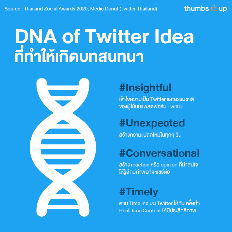 การเข้าใจแพลตฟอร์มทวิตเตอร์นั้นไม่ใช่เรื่องยาก แค่นักการตลาดเข้าใจความเป็นทวิตเตอร์ก็จะมีความคิดสร้างสรรค์และเข้าใจว่าทำคอนเทนต์บนแพลตฟอร์มนี้อย่างไรให้คนอยากรีทวิต รวมทั้งต้องรู้จักสร้างความแปลกใหม่ให้แก่ผู้พบเห็นทุกวัน อย่าช้าที่จะสร้างสรรค์คอนเทนต์ใหม่ๆ เพราะการคุยกันบนทวิตเตอร์ จะช่วยสร้างแฮชแท็กใหม่ๆ เกิดขึ้นทุกวัน แบรนด์ต้องเกาะกระแสให้ทัน เพื่อการสร้าง realtime content ที่เชื่อมโยงกับแบรนด์