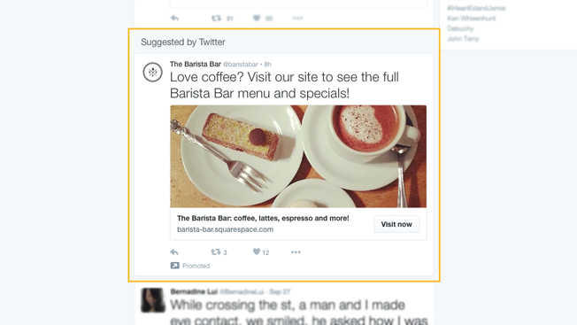 รายงานจากสำนักข่าว Adweek ระบุว่า Twitter ได้เริ่มทดสอบโฆษณาทั้งประเภท promoted tweet และวิดีโอบนแพลตฟอร์มสำหรับผู้ที่ไม่ได้ลงชื่อใช้งาน Twitter โดยจุดมุ่งหมายหลักคือการเปิดทางให้นักการตลาดสามารถเข้าถึงกลุ่มคนได้เกินกว่ากลุ่มสมาชิก Twitter ซึ่งปัจจุบันมีสถิติที่ราว 500 ล้านคนต่อเดือน