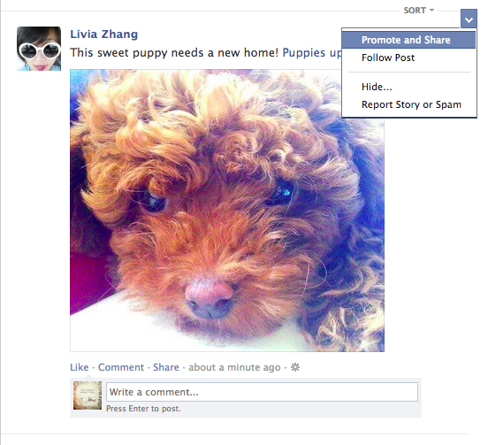 จุดนี้ผู้บริหาร Facebook ยกตัวอย่างความสะดวกที่ชาว Facebook จะได้รับจากบริการ Promote Posts เพื่อโปรโมทโพสต์ของเพื่อน ว่าสามารถใช้ได้ทั้งกรณีการเผยแพร่ข้อมูลสาธารณะที่เป็นประโยชน์ต่อคนส่วนรวม หรือกรณีผู้ต้องการกระจายข่าวสารส่วนตัวอย่างการประกาศหาห้องเช่า ซึ่งจะยิ่งเป็นผลดีหากมีผู้ได้อ่านข่าวมากขึ้น
