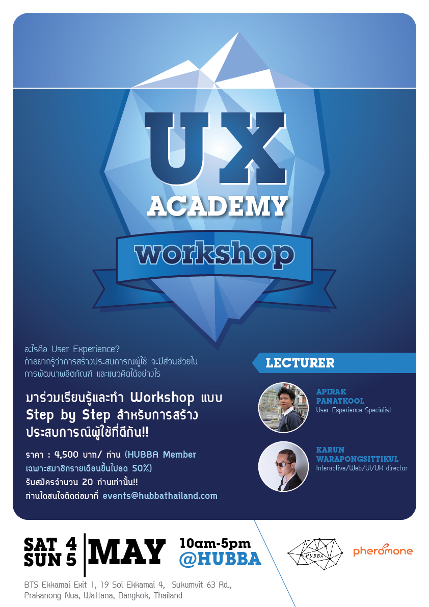 เมื่อยอดภูเขาน้ำแข็งที่โผลพ้นน้ำเป็นแค่ User Interface และ Feature อะไรบ้างที่อยู่ใต้ภูเขาน้ำแข็ง? อะไรคือ User Experience? ถ้าอยากรู้ว่าการสร้างประสบการณ์ผู้ใช้ จะส่งผลดีต่อการพัฒนาแนวคิดและผลิตภัณฑ์ได้อย่างไร มาร่วมเรียนรู้และทำ Workshop กับ แบบ Step by Step สำหรับการพัฒนา User Experience เบื้องต้นกัน!!!