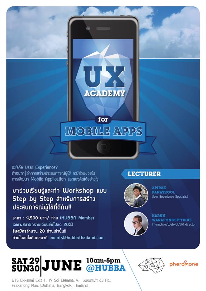 ราคา : 4,500 บาท ต่อท่าน (HUBBA Member รายเดือนขึ้นไปลด 20%)