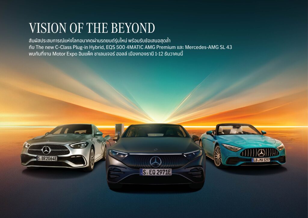 “EQS 500 4MATIC AMG Premium” ยานยนต์พลังไฟฟ้า 100% รุ่นประกอบในประเทศคันแรกที่ผสานทั้งเทคโนโลยี ดีไซน์ ฟังก์ชันการใช้งาน และการเชื่อมต่อเข้าด้วยกันอย่างกลมกลืน “Mercedes-AMG SL 43” รถยนต์สปอร์ตขุมพลังแรงเวอร์ชันใหม่ของรุ่นที่เป็นตำนานที่แฟน เมอร์เซเดส-เบนซ์ ตัวจริงรอคอย และ “Mercedes-Benz C 350 e AMG Dynamic” ยานยนต์ปลั๊กอินไฮบริดรุ่นใหม่ในตระกูล C-Class ที่เปิดตัวไปก่อนหน้านี้และได้รับเสียงตอบรับที่ดีเยี่ยม รวมถึงอีกหลายรุ่นที่พร้อมให้แฟน ๆ เมอร์เซเดส-เบนซ์ได้ตื่นเต้นตลอดงานมหกรรมยานยนต์ ตั้งแต่วันที่ 1-12 ธันวาคมนี้