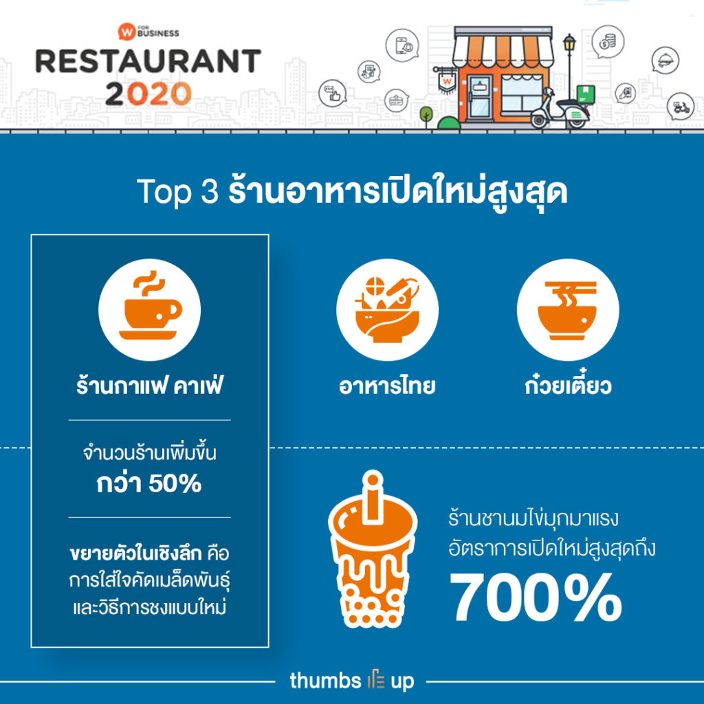 จากฐานข้อมูลของ Wongnai นั้น บอกให้ทราบว่า ธุรกิจร้านอาหารเปิดใหม่ในช่วงปี 2018-2019 มีอัตราการเติบโตมากขึ้น แต่ร้านที่อยู่รอดมีเพียง 10% เท่านั้น นั่นแสดงให้เห็นว่า การเปิดร้านอาหารใหม่ก็มีความเสี่ยงเรื่องการแข่งขันสูง และหากคุณไม่สามารถรักษามาตรฐานได้ดีพอก็ยากที่จะไปต่อได้