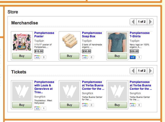 The Merch Store ถือเป็นความร่วมมือของผู้นำในบริการออนไลน์ด้านต่างๆ ไม่ว่าจะเป็น Topspin ผู้ให้บริการจำหน่ายสินค้าและตั๋วคอนเสิร์ต, Songkick ผู้ให้บริการด้านคอนเสิร์ต หรือแม้แต่ Amazon และ iTunes ผู้ให้บริการดาวน์โหลดเพลงรูปแบบดิจิตอลชั้นนำของโลก ซึ่งความร่วมมือเหล่านี้แม้จะยังไม่ได้มีการระบุรูปแบบของรายได้ว่าจะมาจากส่วนแบ่งจากการขายหรือไม่ แต่ก็เป็นที่คาดเดาได้ว่า The Merch Store คงจะไม่หนีไปจากรูปแบบการแบ่งส่วนแบ่งรายได้, การขายพื้นที่โฆษณา และบริการเสริมอื่นๆ