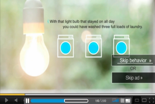 หากผู้ชมกดปุ่มข้ามโฆษณา วิดีโอทีเราเลือกไว้ก็จะเล่นตามปกติ แต่หากกดที่ skip behavior ผู้ใช้จะถูกส่งเข้าสู่เว็บไซต์แนะนำการรักษาสิ่งแวดล้อม ?Eco Guide? ซึ่งจะมีเคล็ดลับในการประหยัดพลังงานในบ้านมากมาย