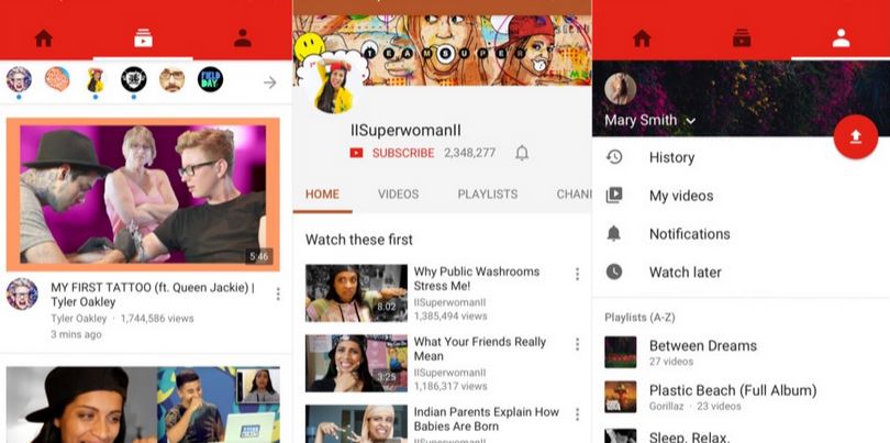 การออกแบบหน้าจอสำหรับผู้ใช้งานในเวอร์ชั่นนี้ เกิดขึ้นเพราะทีมงาน YouTube คิดว่าผู้ใช้งานจะหาคอนเทนต์ดีๆ ได้ง่ายขึ้น และคำสั่ง Favorite channels, recommended videos รวมไปถึง subscriptions ก็สามารถเข้าถึงได้ง่ายขึ้น เพียงแค่ swipe หรือแตะที่ไอค่อนเท่านั้น ลืมเมนูที่เคยซ้อนกันเป็นแฮมเบอร์เกอร์แบบเดิมๆ ไปได้เลย