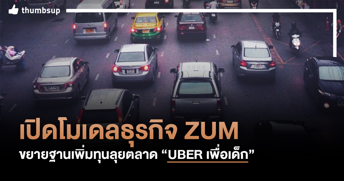 Zum เป็นบริการที่ถูกขนานนามว่า Uber for kids วันนี้ Zum ได้รับเงินทุนเพิ่มจนมีความพร้อมขยายบริการสู่หลายเมือง โอกาสสู่ความสำเร็จนี้ทำให้ Zum ถูกจับตามอง ในฐานะบริการรถร่วมเดินทางน้องใหม่ที่สามารถเจาะเซ็กเมนต์ย่อยได้อย่างน่าทึ่ง